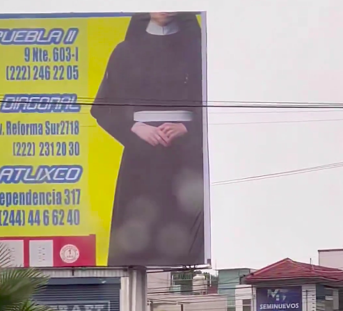 Esta mañana el famoso espectacular amaneció con una monja donde antes había una chica en lencería.