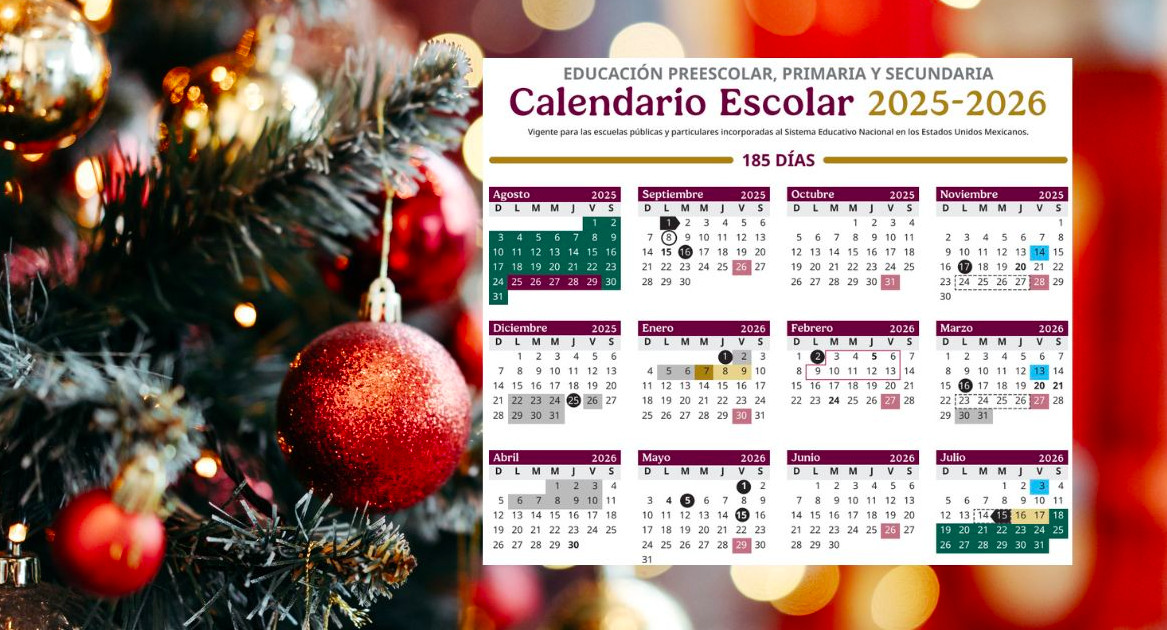 El ciclo escolar 2025 a 2026 incluye dos periodos vacacionales largos, además del receso de verano:
