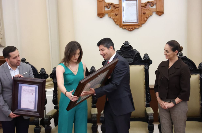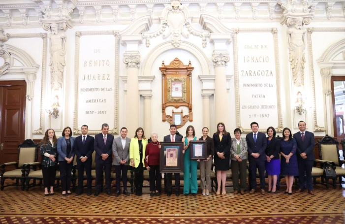 Eduardo Rivera reconoce la cédula real y la real provisión a Matilde Álvarez atleta poblana destacada