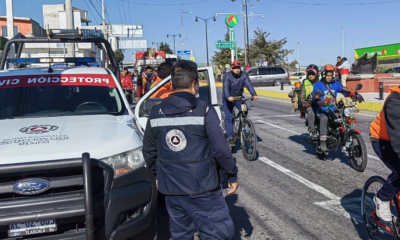 Ante el aumento del flujo vehicular por el paso de peregrinos, personal de la Dirección de Seguridad Pública, Tránsito y Protección Civil de Huamantla, ejecutan un...