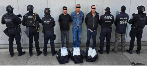 Resultado de labores de inteligencia y de los mecanismos de colaboración internacional para detener a generadores de violencia en la Ciudad de México, elementos de la Secretaría de Seguridad y Protección Ciudadana (SSPC), Fiscalía General de la República (FGR), Secretaría de la Defensa Nacional (Defensa), Secretaría de Marina (Semar) y Guardia Nacional (GN), en coordinación con la Secretaría de Seguridad Ciudadana (SSC) de la capital del país, detuvieron a tres personas y se aseguraron 50 kilos de metanfetamina.