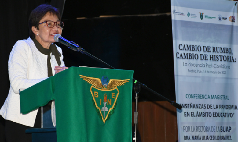 En su conferencia “Enseñanzas de la pandemia en el ámbito educativo. La docencia post-covidiana”, en el teatro normalista del Benemérito Instituto Normal del Estado “Gral. Juan Crisóstomo Bonilla” (BINE), la Rectora refirió que esta pandemia externó la necesidad de tener alternativas para dar continuidad a los aprendizajes, las brechas de acceso a internet, la falta de esquemas de formación y gestión académica y dificultades para el acceso a plataformas educativas por parte de los estudiantes.