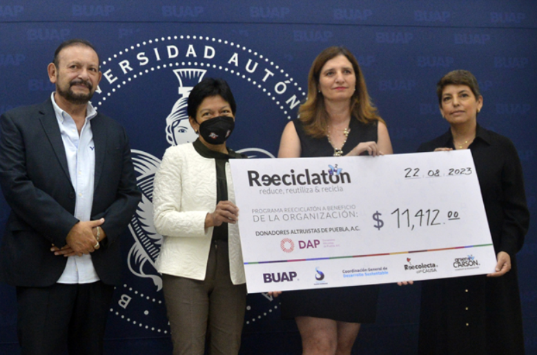 Rectora María Lilia Cedillo Ramírez entrega cheque del Reciclatón 2023