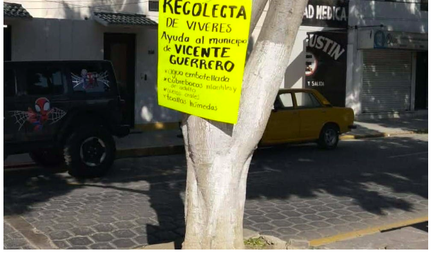 La organización Jóvenes Unidos Con Causa (JUCA) instaló un punto de recepción en GA-ZA Papelería y Mercería, ubicada en la calle Miguel Hidalgo #821, colonia 16 de Marzo, donde se están recibiendo principalmente agua embotellada, alimentos no perecederos, suero oral, barras energéticas y artículos de protección.