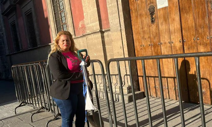 La fundadora del colectivo Madres Buscadoras de Sonora intentó acercarse este lunes 18 de marzo a Palacio Nacional para entregar a López Obrador una pala, con la que dijo, ha escarbado la tierra en diferentes partes del país: “Para que él también haga su trabajo, porque esta pala no debería estar en mis manos nunca, pero la tuve que agarrar por necesidad por encontrar a mis hijos”.