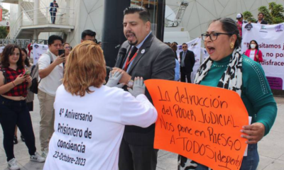 Previo a realizarse el foro sobre las reformas al Poder Judicial, manifestantes a favor y en contra de la propuesta del presidente de México, Andrés Manuel...