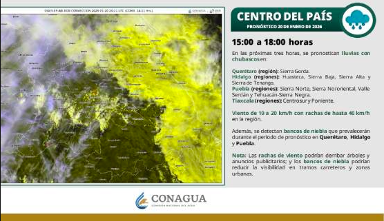 Prevén lluvias y actividad eléctrica en sierras de Puebla